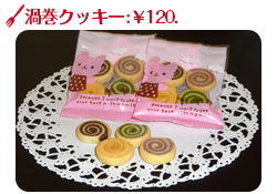 いなご豆、ほうれん草、かぼちゃ、紫芋の4種の野菜クッキー。見た目も可愛い渦巻きです。